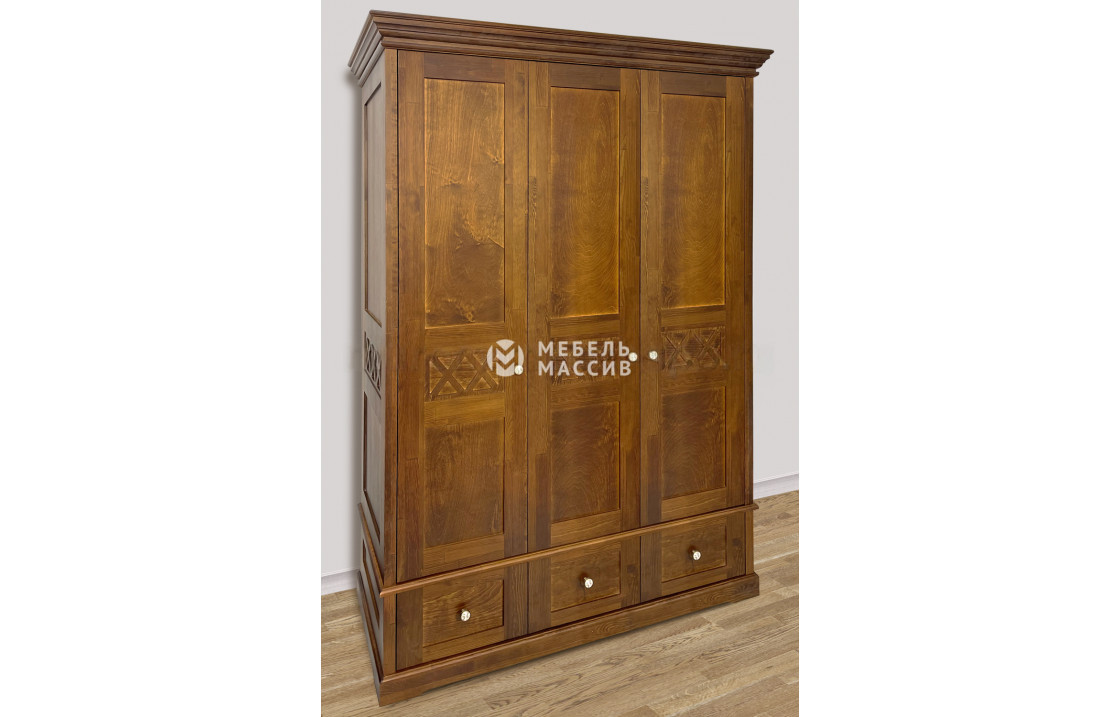 Трехстворчатый шкаф Дубрава – это классический образец мебели, который придется по вкусу всем, кто ценит изысканность и элегантность в интерьере. Его внешний вид поражает своей роскошью, благодаря использованию массива натурального дерева в качестве главного материала и широкой цветовой палитре. Лаковое покрытие придает еще больше изыска и акцентирует внимание на прекрасной древесной текстуре. Одной из особенностей модели является сплошное основание, обеспечивающее устойчивость и надежность. Этот шкаф отличается своей вместительностью и долгим сроком службы, что делает его отличным выбором для любого дома. Доставка %rs_city_po% и %rs_po_oblasti%.| Размер | Цена | |